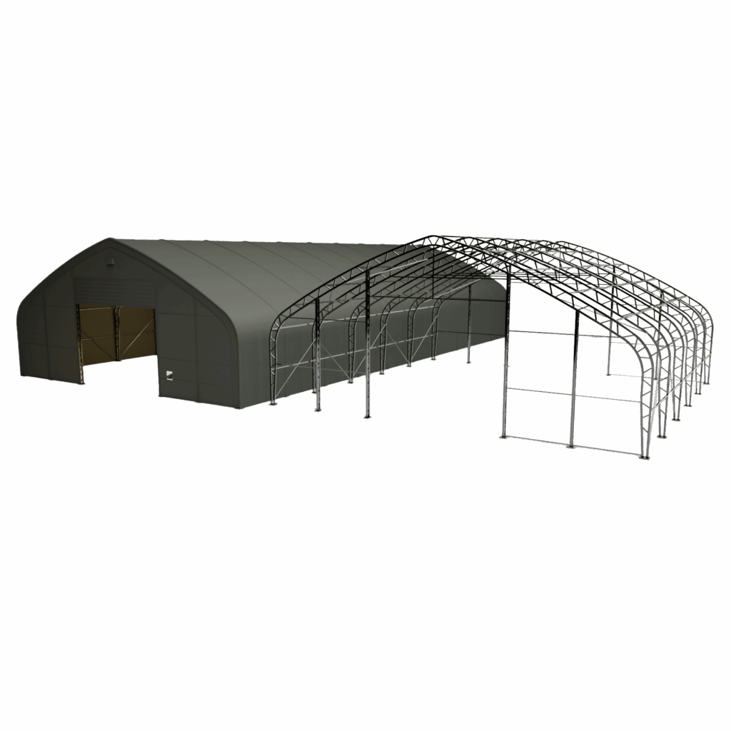 V naší nabídce naleznete malé montované haly, jejichž velikost (š × d × v) začíná na 6,1 × 6,1 × 3,66 ma naše největší haly mají rozměry až 21,35 × 61 × 8,54 m. Pokud ale potřebujete plachetní halu nebo sklad s větším rozměrem, než máme v nabídce, můžete si ji nakonfigurovat přes náš konfigurátor.