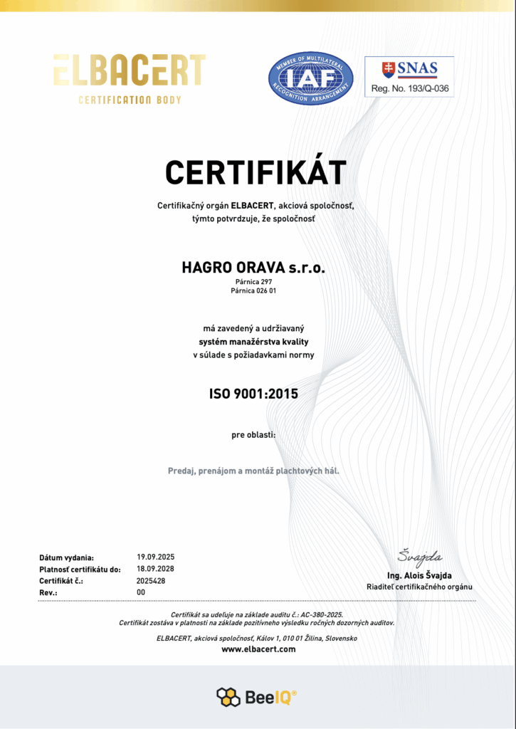 • Největší prodejce plachtových hal na Slovensku