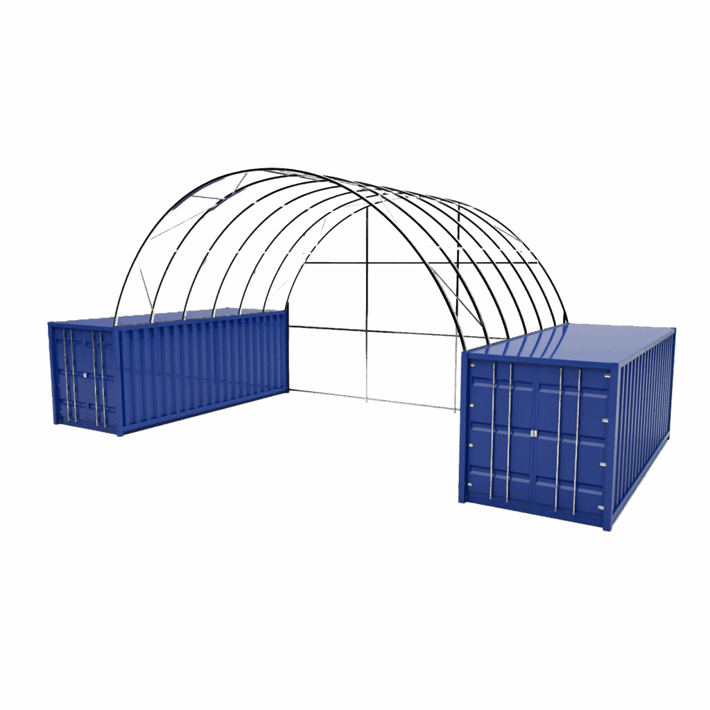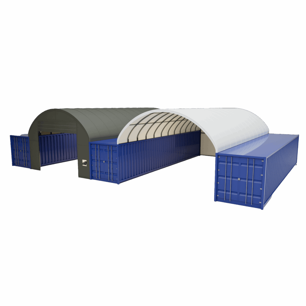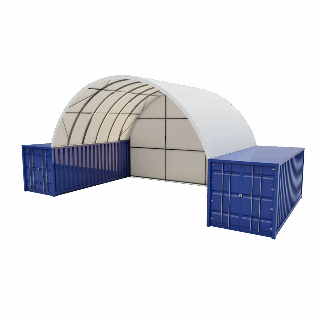 Přístřešky pro kontejnery dlouhé 12m jsou konstrukce z pevné pozinkované oceli, překryté odolnou PVC plachtou složenou ze tří vrstev. Díky kvalitnímu PVC překrytí se vyznačují vysokou odolností vůči větru, sněhu, dešti i UV záření a zachovávají si plnou nepromokavost po celou dobu životnosti.