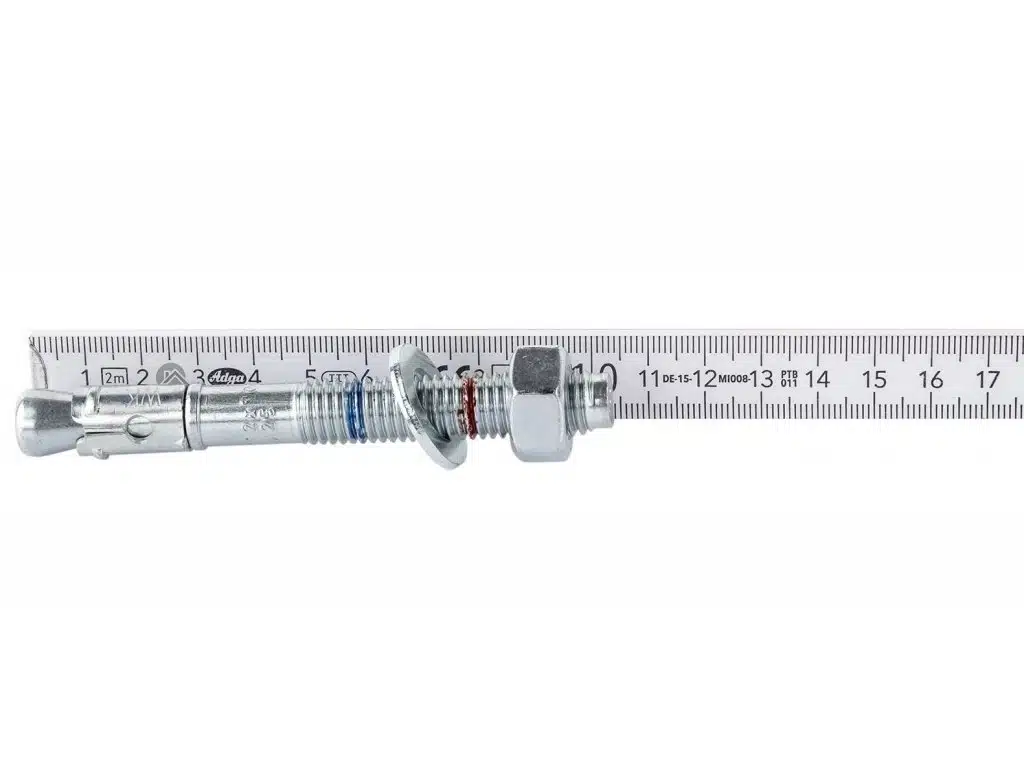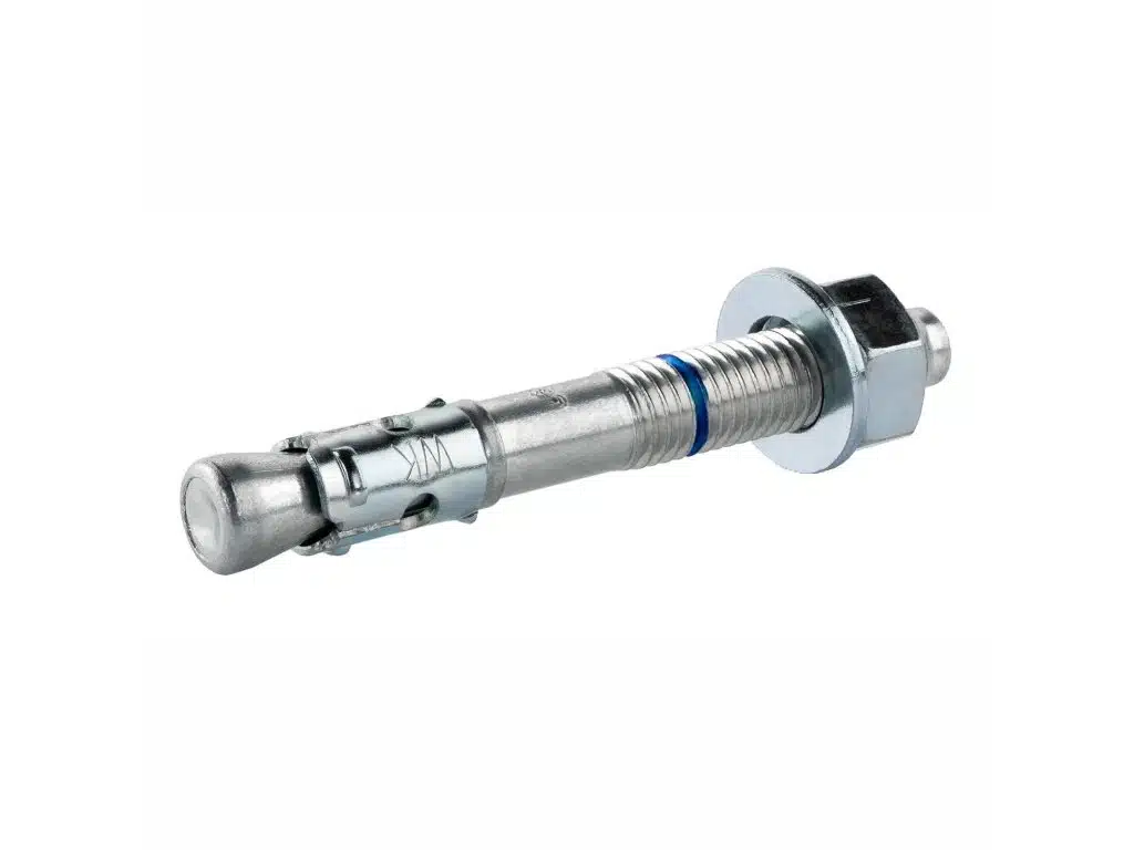 Mechanická ocelová kotva LE-ZN renomované firmy Klimas Wkręt-met sestává ze závitového čepu s rozpěrným kuželem, rozpěrného pásu, šestihranné matice a podložky.