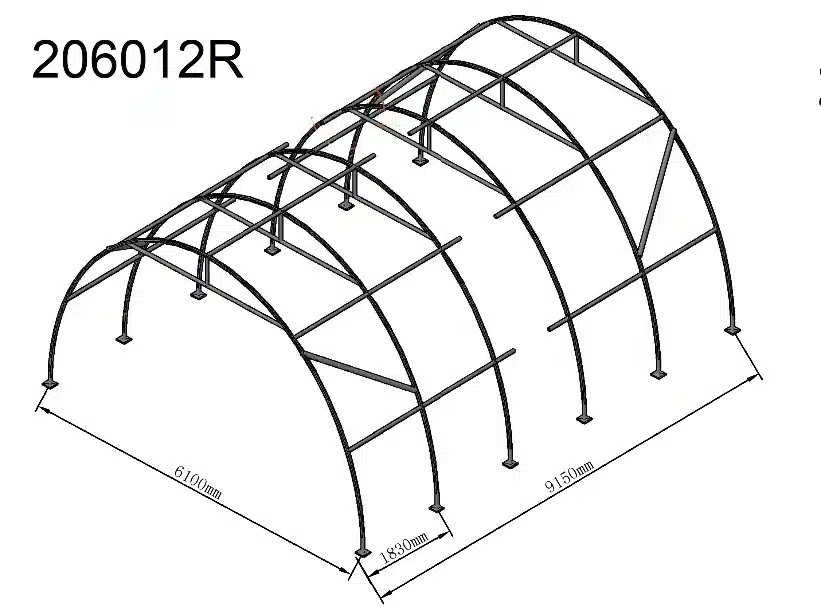 • Pevné trubky spojující segmenty spolu s ocelovými troubami zvyšují odolnost haly vůči větru a padajícímu sněhu.