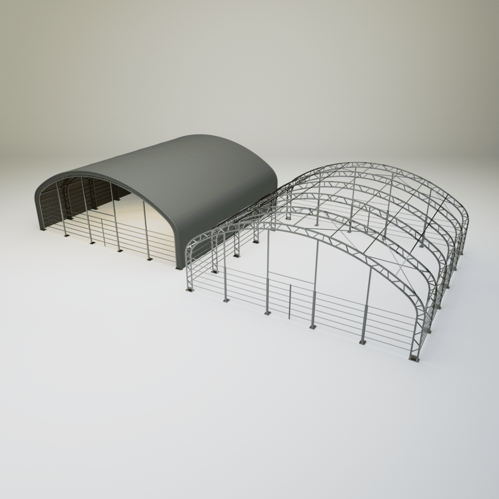 Celá hala (konstrukce včetně plachty) je zabalena v 1 nebo více boxech (záleží na rozměru)