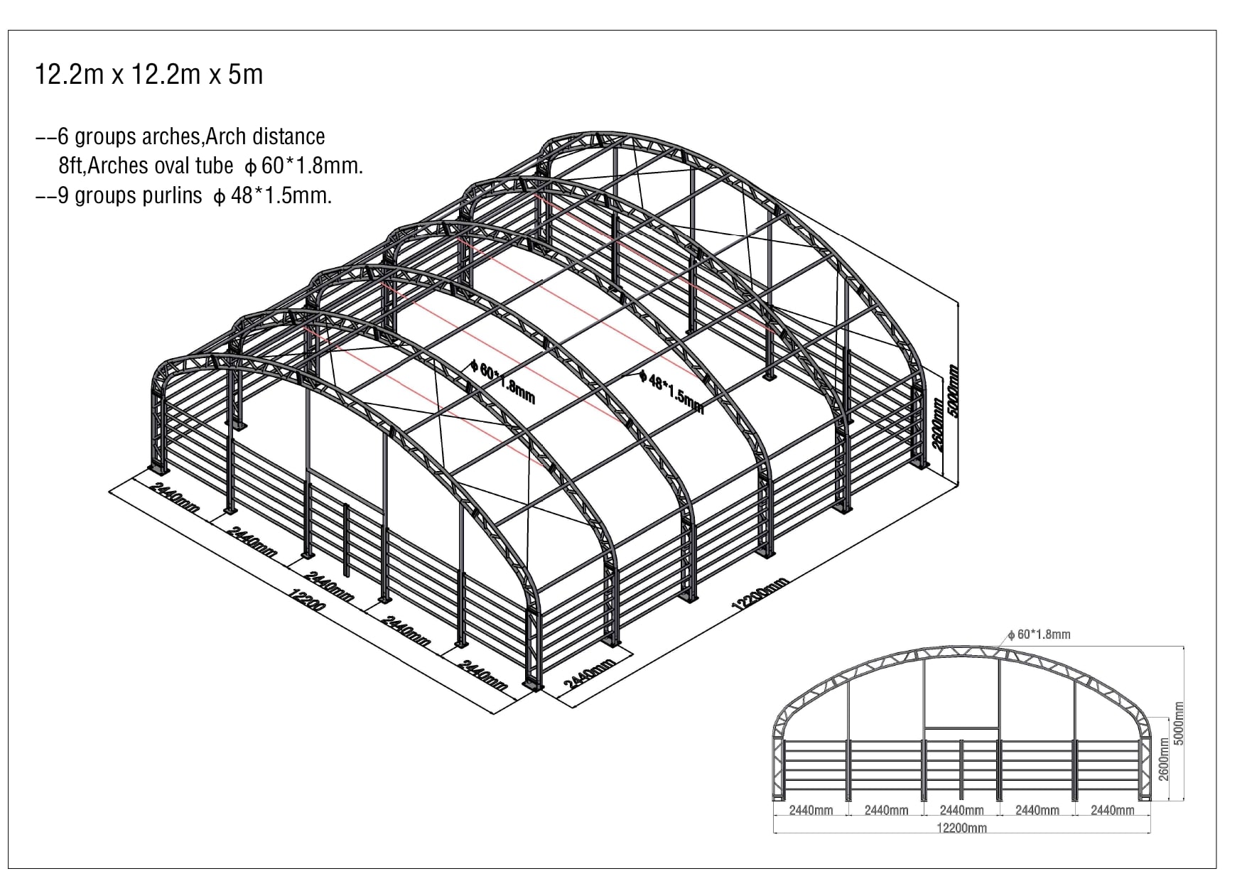 • Průměr trubek: ø 70mm x 42mm (záleží na rozměru haly)