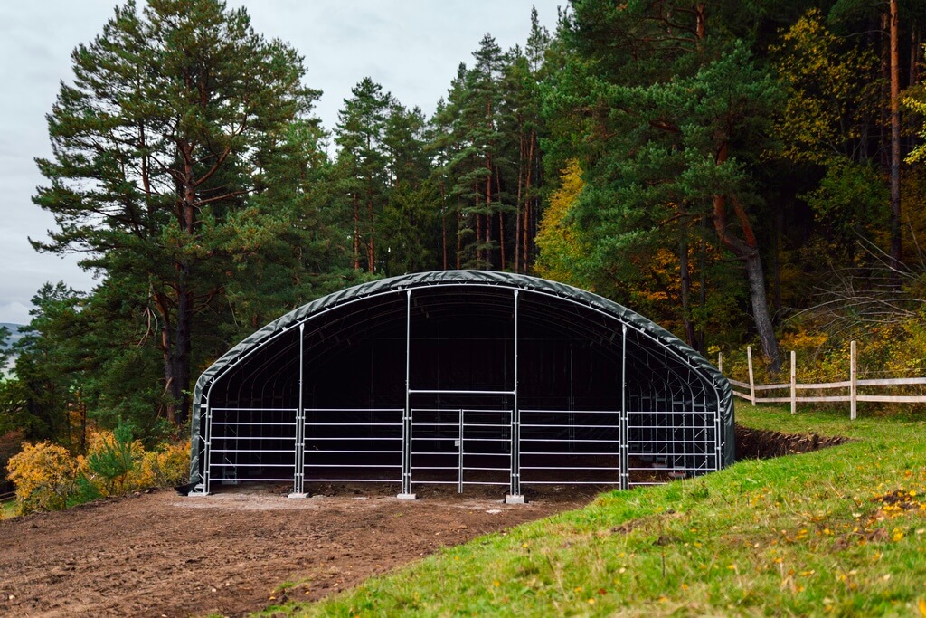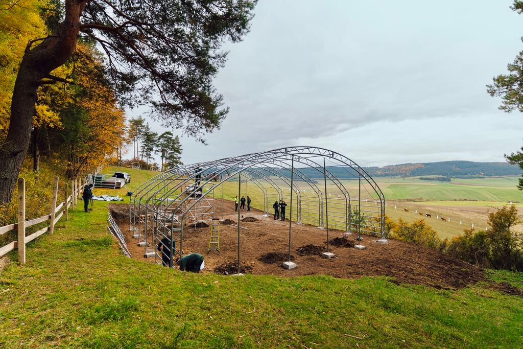 • Hala má dodatečnou pevnost díky zavětrávacím ocelovým trubkám nebo ocelovým lanům (záleží na konstrukci), díky kterým je stabilní i při silném větru