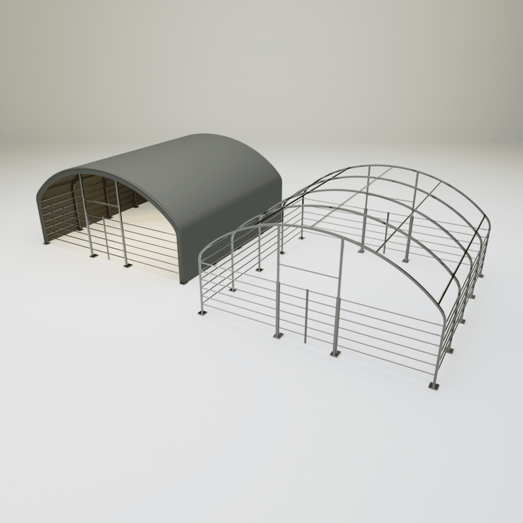 Celá hala (konstrukce včetně plachty) je zabalena v 1 nebo více boxech (záleží na rozměru)