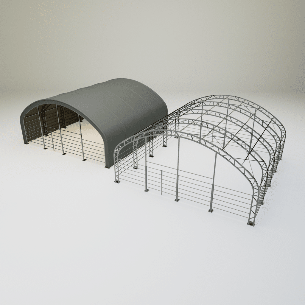 Celá hala (konstrukce včetně plachty) je zabalena v 1 nebo více boxech (záleží na rozměru)