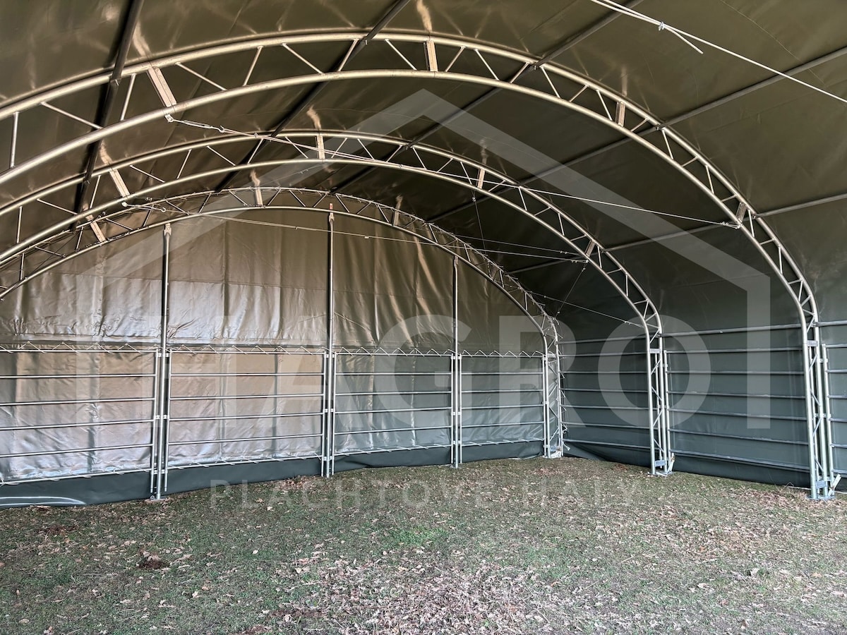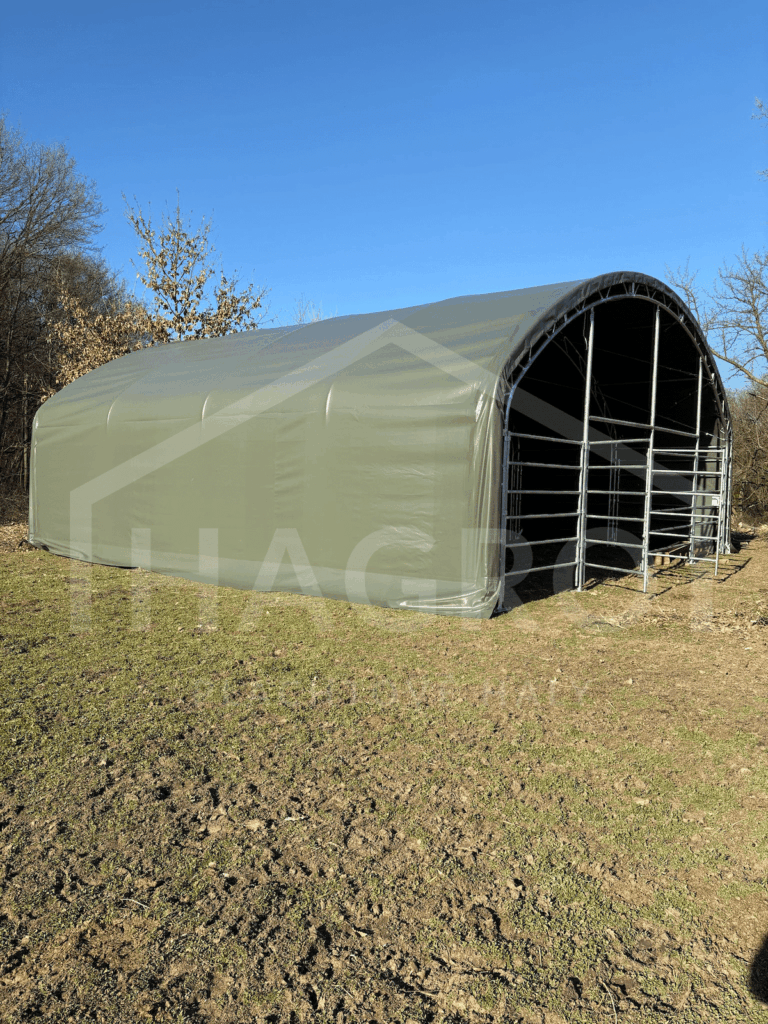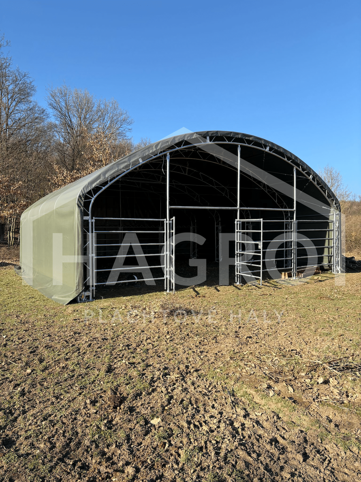 • Hala má dodatečnou pevnost díky zavětrávacím ocelovým trubkám nebo ocelovým lanům (záleží na konstrukci), díky kterým je stabilní i při silném větru