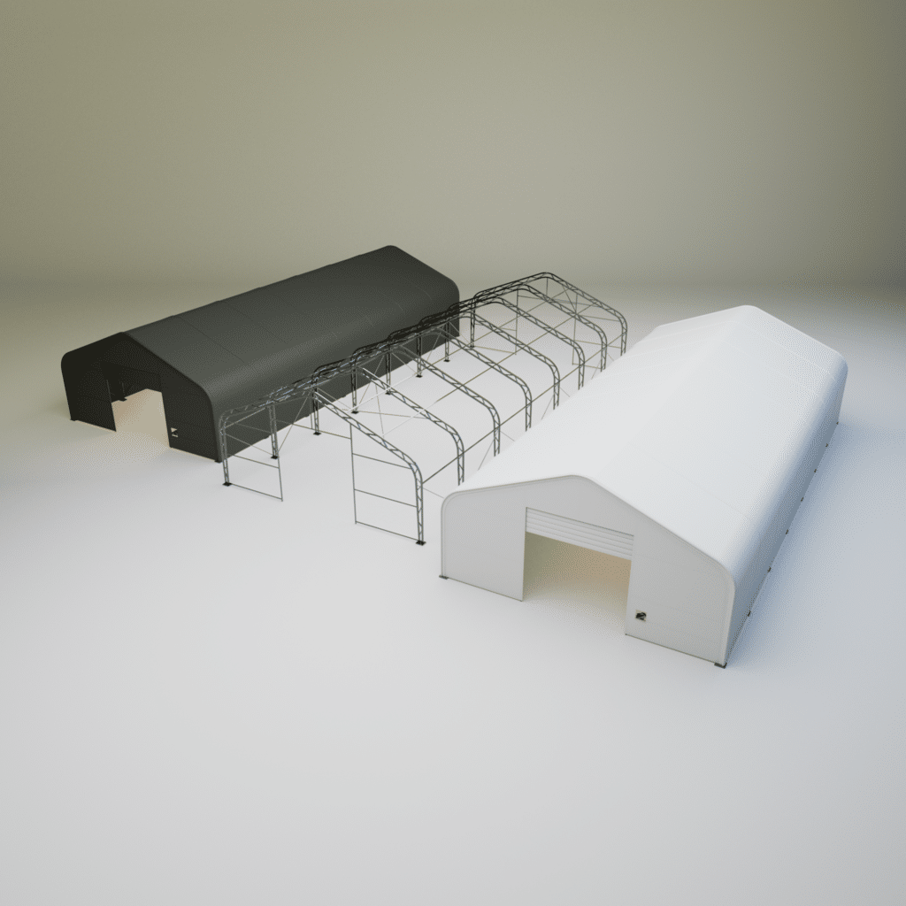 Celá hala (konstrukce včetně plachty) je zabalena v 1 nebo více boxech (záleží na rozměru)