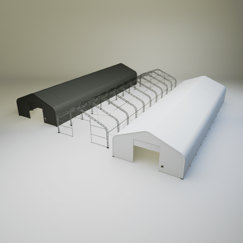 Celá hala (konstrukce včetně plachty) je zabalena v 1 nebo více boxech (záleží na rozměru)