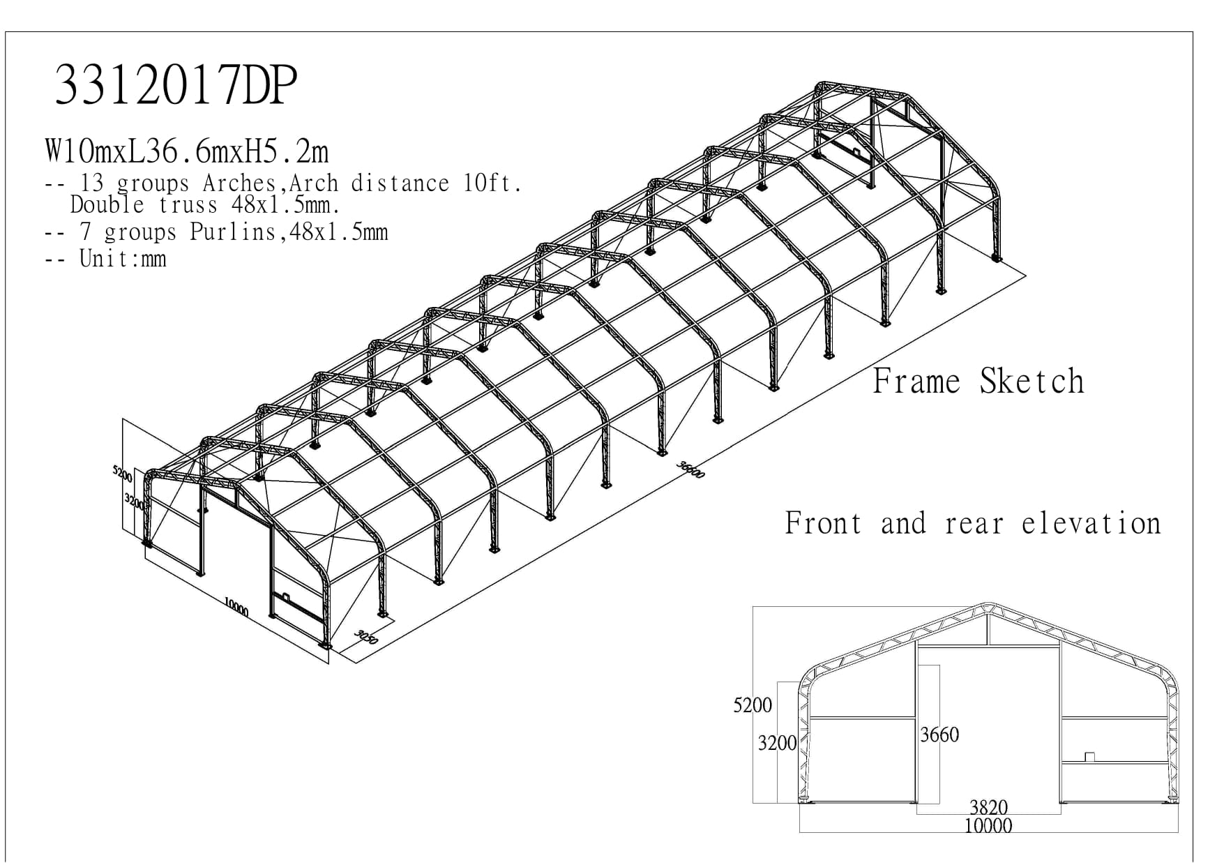 pozinkovaná trubková konstrukce, spojovací materiál, roxorové kotvy do země, střešní a boční plachty, český manuál pro montáž haly