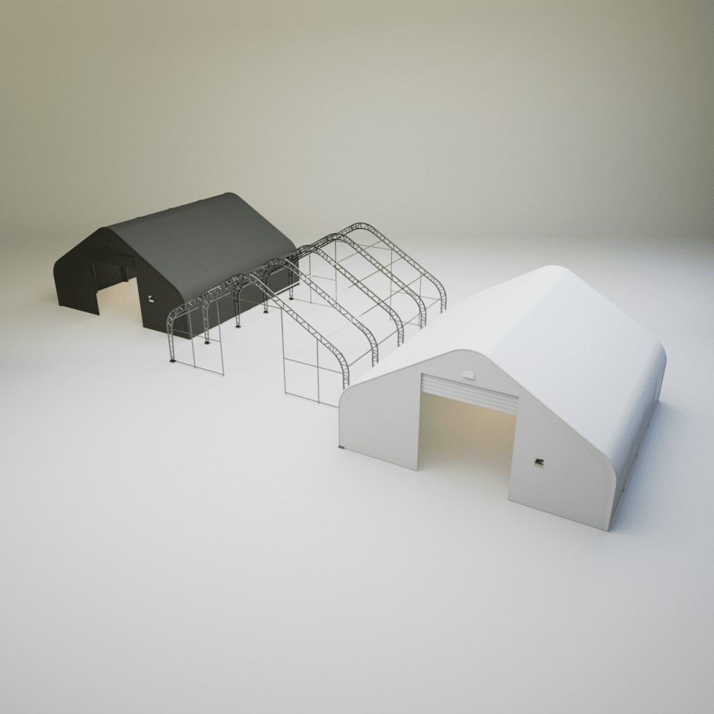 Celá hala (konstrukce včetně plachty) je zabalena v 1 nebo více boxech (záleží na rozměru)
