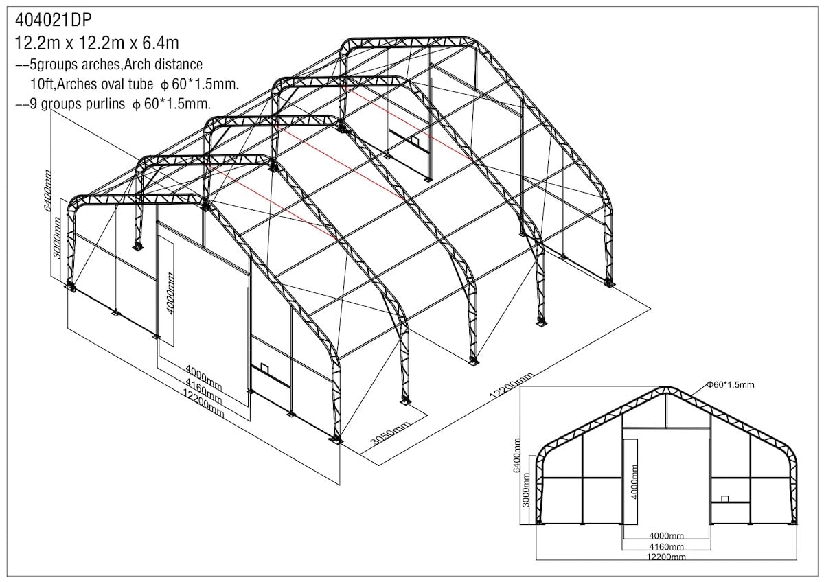 • Průměr trubek: ø 70mm x 42mm (záleží na rozměru haly)