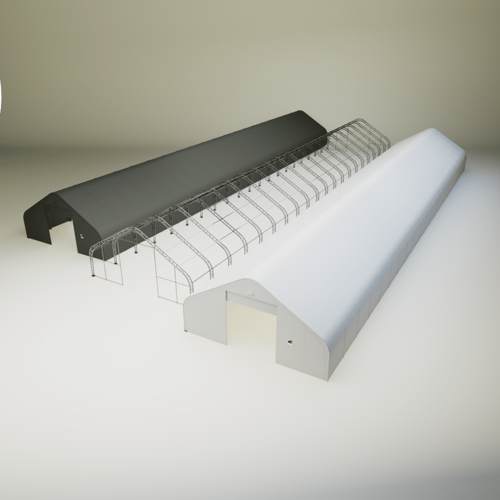 Celá hala (konstrukce včetně plachty) je zabalena v 1 nebo více boxech (záleží na rozměru)