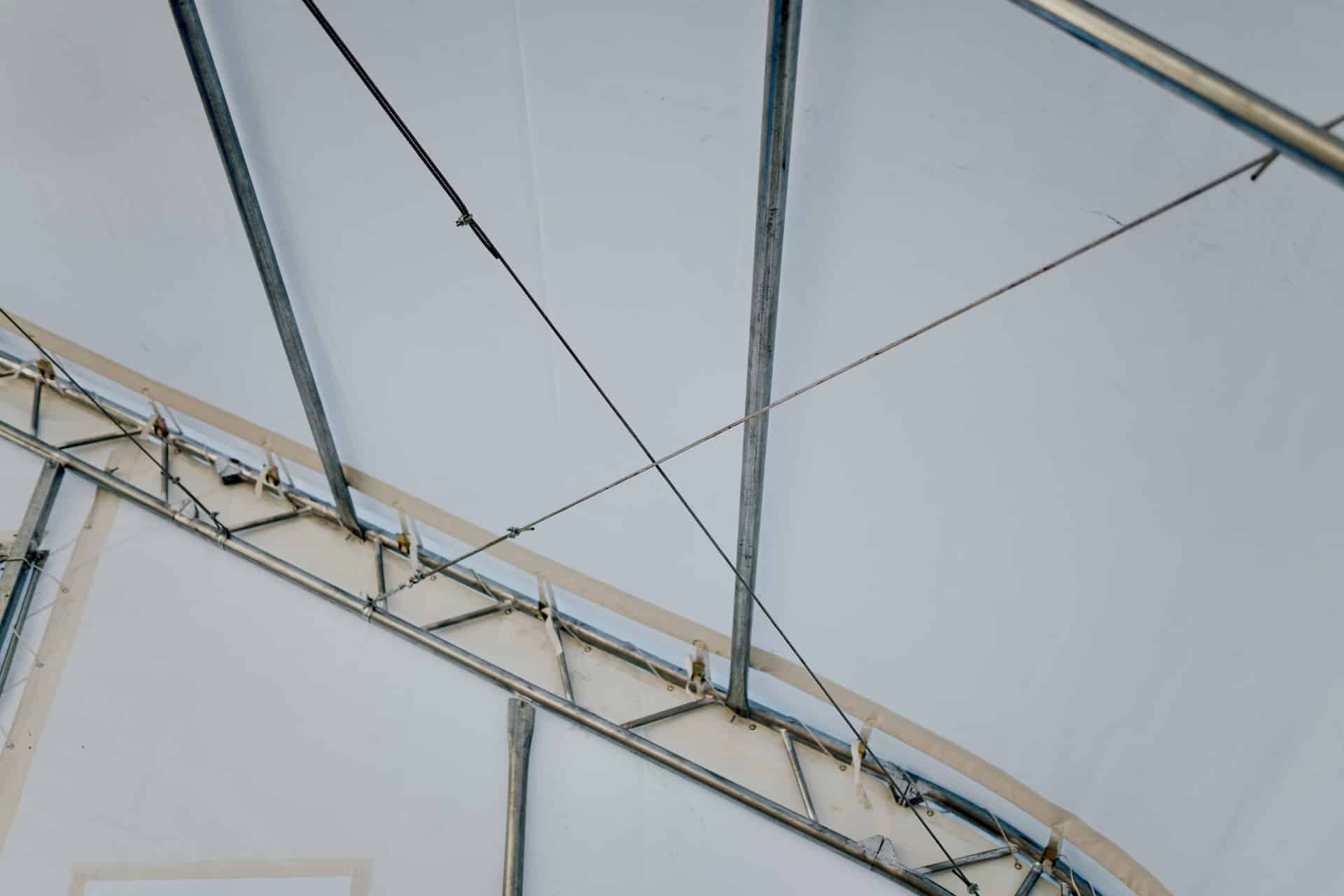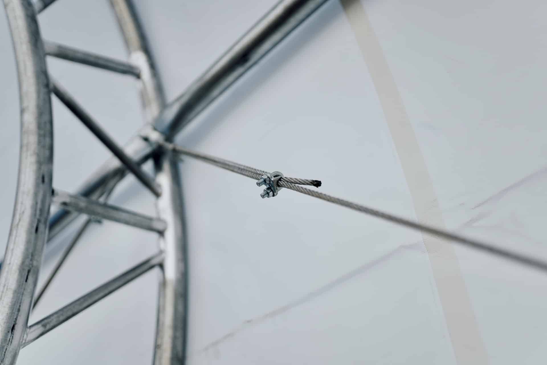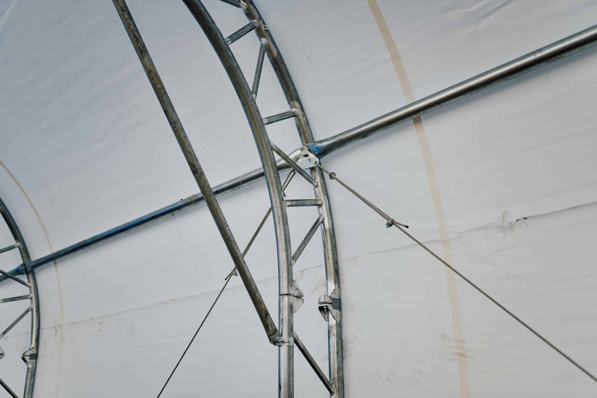 • Hala má dodatečnou pevnost díky zavětrávacím ocelovým trubkám nebo ocelovým lanům (záleží na konstrukci), díky kterým je stabilní i při silném větru
