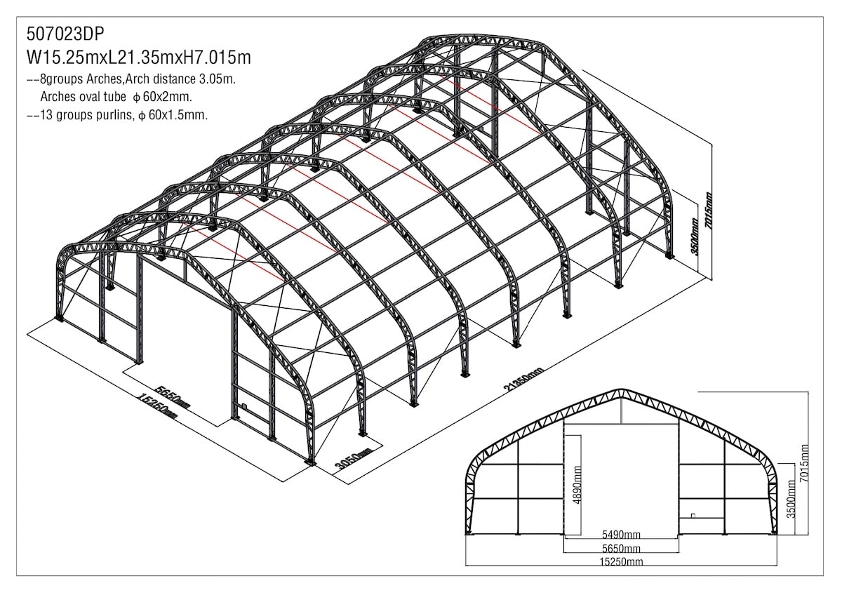 • Průměr trubek: ø 70mm x 42mm (záleží na rozměru haly)