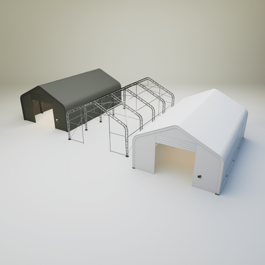 Celá hala (konstrukce včetně plachty) je zabalena v 1 nebo více boxech (záleží na rozměru)