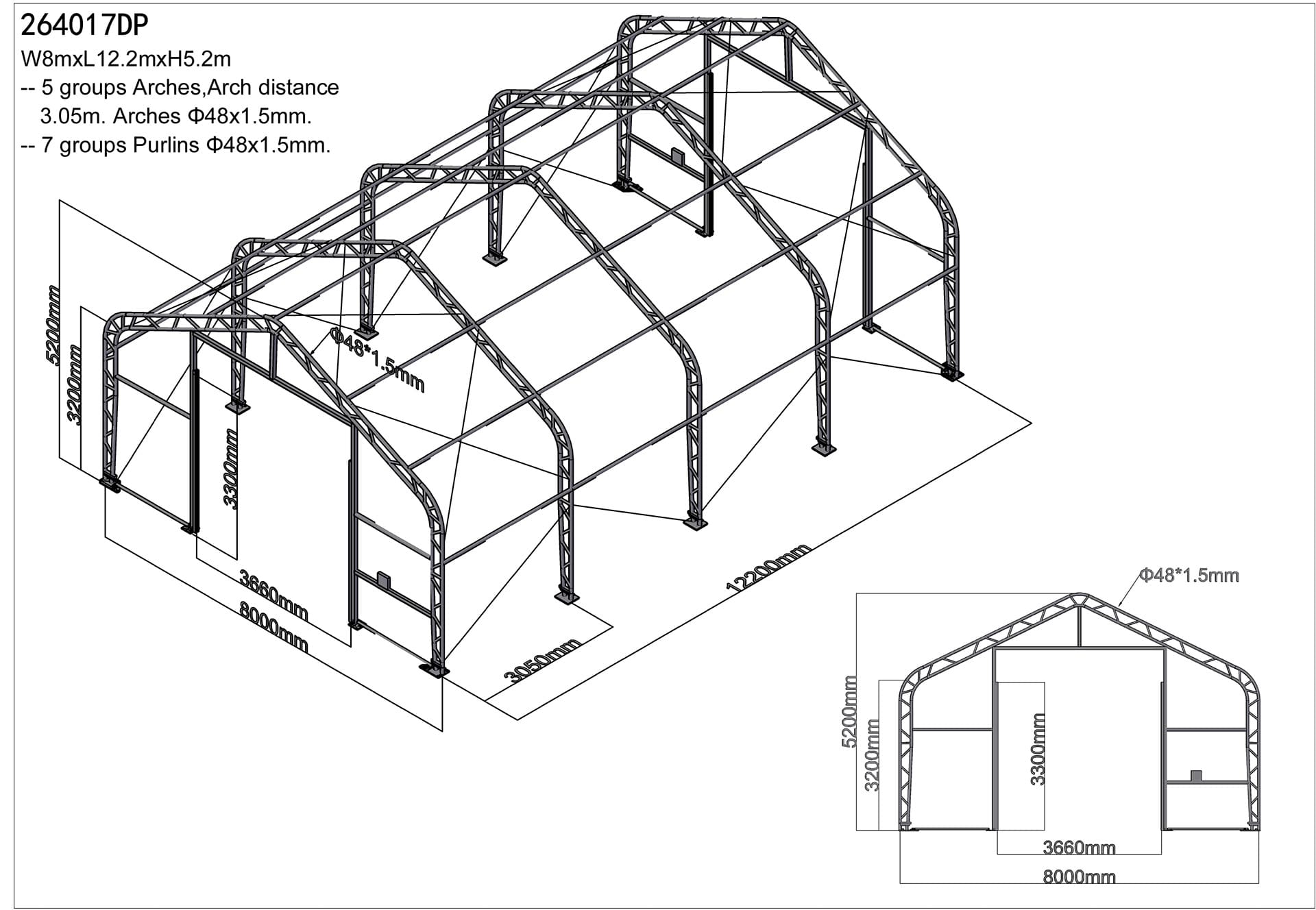 • Průměr trubek: ø 70mm x 42mm (záleží na rozměru haly)