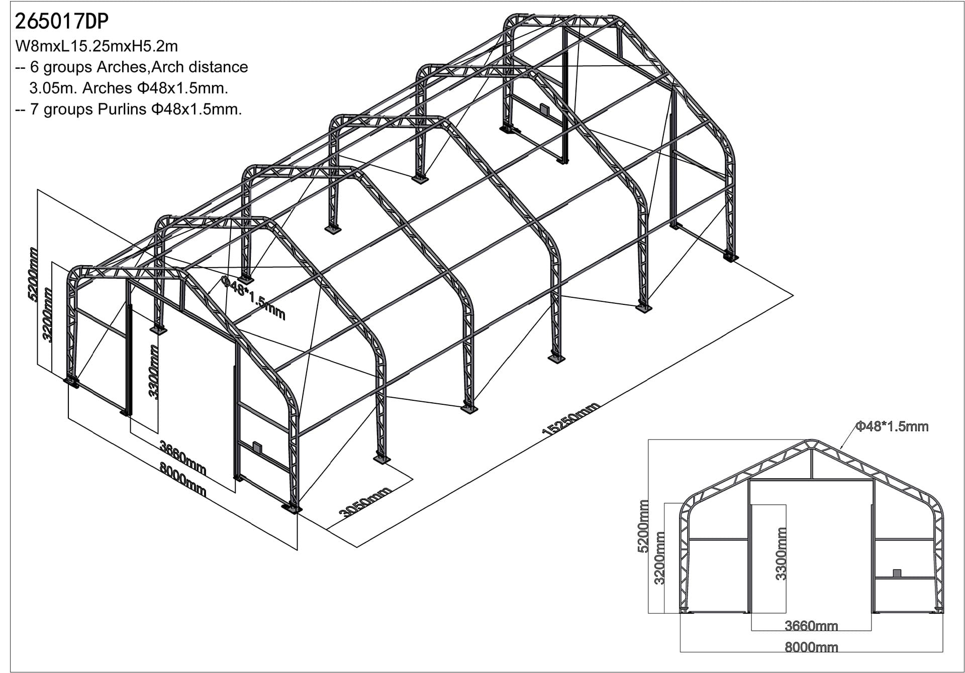 • Průměr trubek: ø 70mm x 42mm (záleží na rozměru haly)