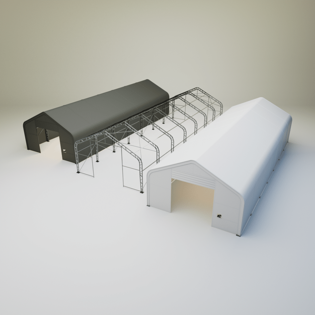 Celá hala (konstrukce včetně plachty) je zabalena v 1 nebo více boxech (záleží na rozměru)