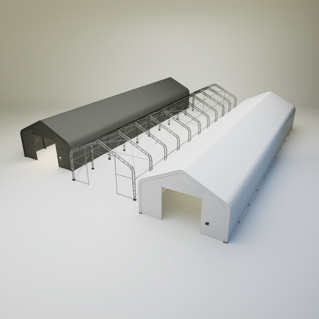 Plachtovou halu můžete libovolně „donekonečna“ prodlužovat a zvětšit tak skladovou plochu haly.