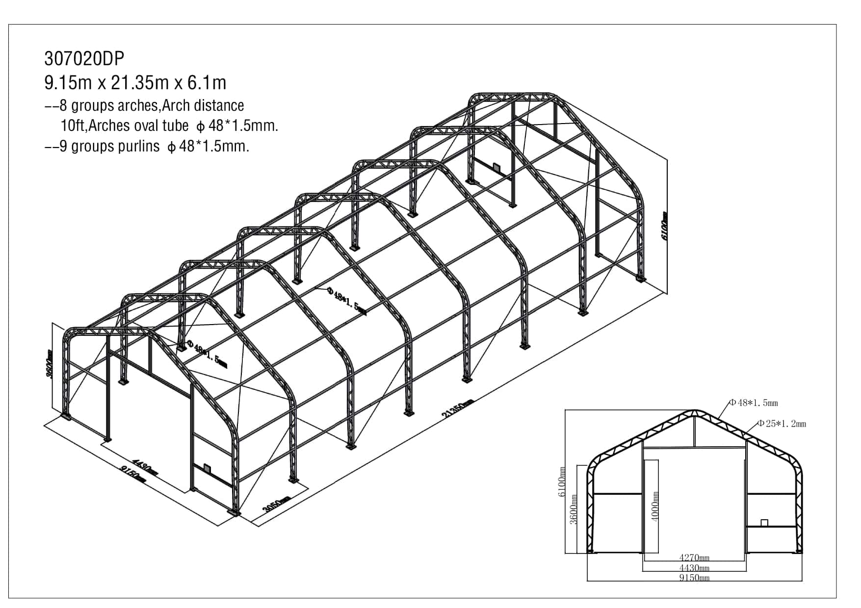 • Průměr trubek: ø 70mm x 42mm (záleží na rozměru haly)